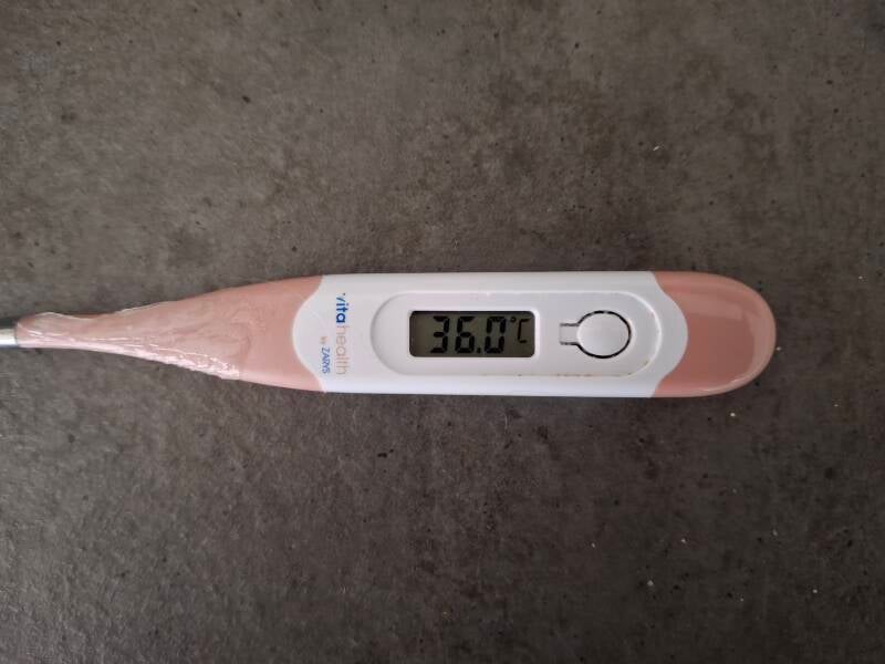 Omdat de temperatuurdaling naar 36,0 is geweest betekent dat dat de bevalling er aan komt. We zullen dan ook geen temperatuur meer meten.